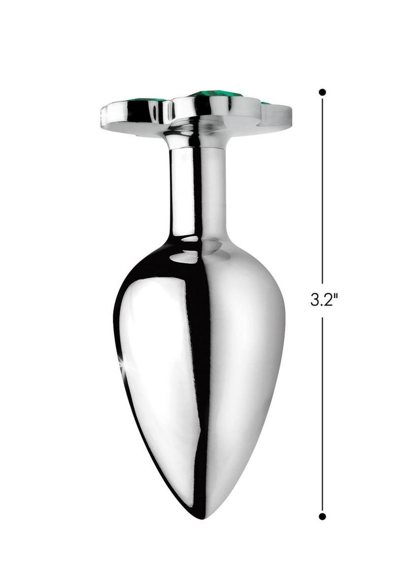 Make that booty get lucky with this hefty metal anal plug with a clover jewel design at the base! Pop this lucky charm in your pot-o-gold to appreciate the comfortable weight inside your body, thanks to the nickel-free aluminum alloy material. Great for temperature play, you can warm it or cool it in water before insertion. The attractive shape of the base will surprise your partner when you bend over. Shake that shamrock! Use with any lubricant of your choosing and clean after use with mild soap or toy cleaner.