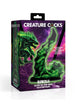 This Creature Cocks dildo comes from a far away planet where beasts take what they want… and they want you! The shape of this rod is unique. It has a curved shaft that rubs against your most sensitive spots like the G-spot, A-spot, or P-spot. It is covered in thick scaly ribs, smaller grooves and ridges, and is flexible yet firm. At the base is a coiled tentacle that you can rub against as you ride, grinding your perineum or vulva against it! After exposure to sunlight, it glows green in the night! Made out of phthalate-free, body-safe, premium silicone, it is body-safe to use with water-based lubricants. The strong, suction-cup base allows for hands-free rides and also makes it compatible for strapon harness devices. Use it with a friend or alone for self-pleasure! Live out all our horror and fantasy scenes, use it for kinky cosplay, and enjoy the novelty of this devious and delicious Glowzilla rod! After use, wash with warm water and mild soap, then rinse it off and spray it with a toy cleaner. Pat dry and store in a cool, dark place.