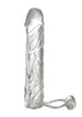 The Vibrating Super Sleeve is a lifelike textured extension that gives you the girth, length, and confidence to satisfy your lover. It's super-stretchy to accommodate most sizes and snug enough to help you last longer. The ball strap holds the extension in place, prolongs ejaculation, and features a powerful micro vibe for explosive climaxes. Your partner will enjoy deeper penetration with the 1 extension at the tip, while you watch your dick grow bigger and thicker than ever before through the crystal clear sleeve! Try it in the shower or spa and turn bath time into pleasure time!