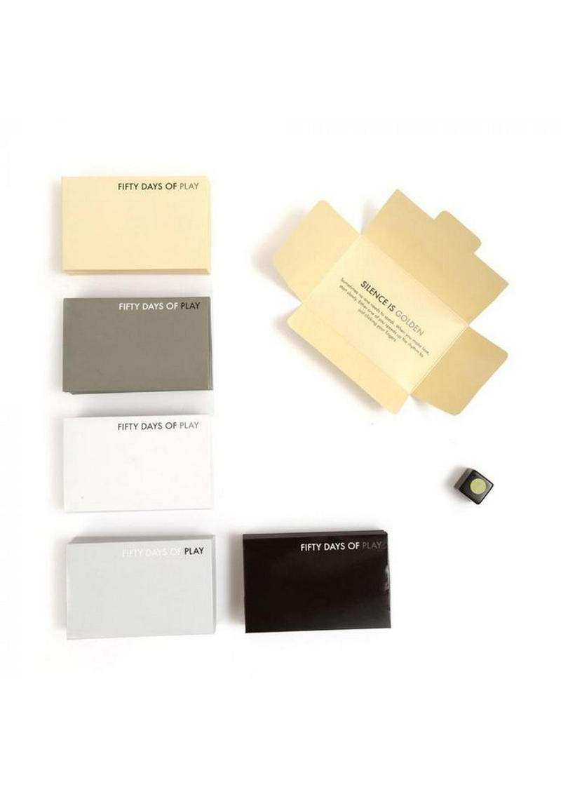 Who will be the dominant player today and who will play a more submissive role? Only the envelope can decideb & Fifty Days of Play has 50 secret envelopes that progress through 5 levels of play, ranging from intimate moments together, through stimulating scenarios, to erotic surprises. Not only can you use the envelopes as part of this game, you can sneak envelopes into your partnerb s purse or wallet as a naughty surprise that is waiting for them to get home. On a weekend away why donb t you both randomly choose a few envelopes and use them to fill your time away with erotic ideas? Fifty Days of Play is a versatile game for you both to share whenever, and however you like.