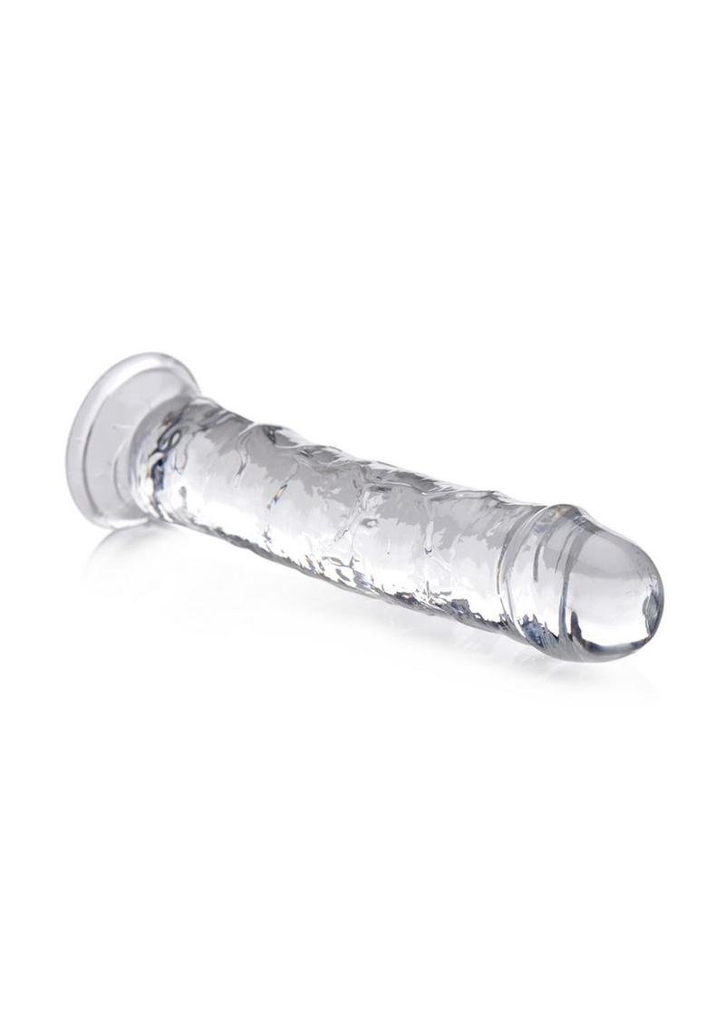 Crystal clear, ultra realisitc, and exceptionally low maintanance for no-nonsense fun! This slim transparent shaft provides a satisfying meaty density from tip to base, featuring realistic hand crafted details for your eyes and your insides to enjoy!