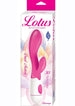 Lotus Sensual Massager #2 features dual motors with 30 buzzy vibrating patterns. This silicone, waterproof toy is flexible at both the base and clitoral arm, allowing the vibe to bend comfortably with one’s body. The bulbous g-spot end and smooth, flat, broad clitoral stimulator ensure pin-pointed pleasure for both erogenous zones. To power on, press the bottom button then the top button to select your favorite function. 3 AAA batteries are required. To remove the battery cap, twist off the base of the product below the power button. Available in Pink and Purple.
