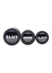 The Dirty Words Anal Plug set includes 3 different sizes of premium silicone booty accessories to train that hole! Go from backdoor beginner to advanced anal enthusiast. Each plug features a naughty name for your ass - or your playthings ass to display: Slave, Whore, and Slut! Which one will that hole be branded with? The tapered shape and smooth material make insertion easier, while the narrow stems make them comfortable for long-term wear. The high-grade silicone is non-porous and phthalate-free, but not compatible with silicone lubricants. Clean with mild soap or toy cleaner.