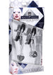 These easy to use clamps have a simple screw-down design, accented with heart shaped padlock detailing. The vinyl coated tips allow for a comfortable and secure grip while the black lacquered heart accent dangles enticingly from the end. The screws on the sides allow you to control just how much pressure your partner receives.