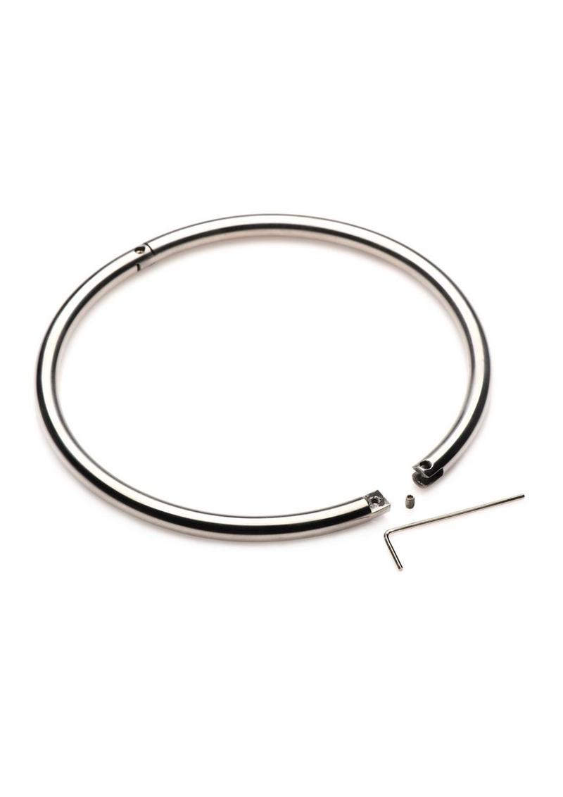 Make your submissive status obvious to your kinky friends and partners with a Stainless Steel Locking Collar! Wear it for short scenes or for long term wear such as weeks or months at a time! Made out of durable, strong, and nickel-free stainless steel, it's easy to clean and perfect for sensitive skin types. To clean, simply use soap and water while it's still on during a shower. If it's taken off and requires a thorough cleaning, boil it in hot water. Use the hex-key included to lock it in place.