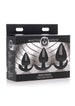 You have drawn the 3 of spades, which delivers a triad of anal pleasure opportunities. Start small, pressing the most petite plug in and savoring the tapered design, which widens dramatically as your hole approaches the base. Once it pops in all the way, your sphincter will rest around the narrow stem, while the ergonomic base sits comfortably between your cheeks. After you have conquered the smallest, move up to the medium plug, and finally the largest, which will stretch you wide open! This butt plug set is compatible with your favorite silicone and water-based lubricants. Clean thoroughly after use with mild soap or toy cleaner.