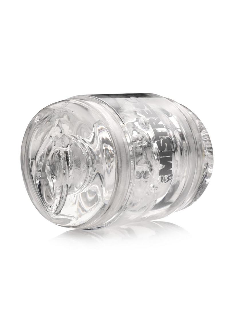 Want something a little different? This Mistress Double Shot Pussy and Ass Stroker gives you both the feeling you're craving and enhances your experience with a clear sleeve and case! Like dipping your wick into crystal, you can see the TPE sleeve stretch and wrap around your rod with each stroke. The light catches in the squishy, soft material so your shaft can still be seen and enjoyed. Choose between the pussy or ass entrances and use the case to grip it as you use some slippery, water-based lubricant to make sure this Mistress stroke is wet enough for you. The textured sleeve will massage and stimulate you with each stroke. Keep the cap on the end for the head of your shaft to bump up on or leave it off and try to push yourself through! The open-ended design also makes clean up easy; simply rinse and let the water and mild soap run through the sleeve. After you let it thoroughly dry, place the caps on the ends to keep it dust and debris free.
