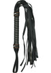 Wonderfully-sized flogger with leather-like strands and strong, sturdy handle. Sexy orange-stitched accents add a touch of fashion and intrigue...and there's even a handy strap for easy carrying.