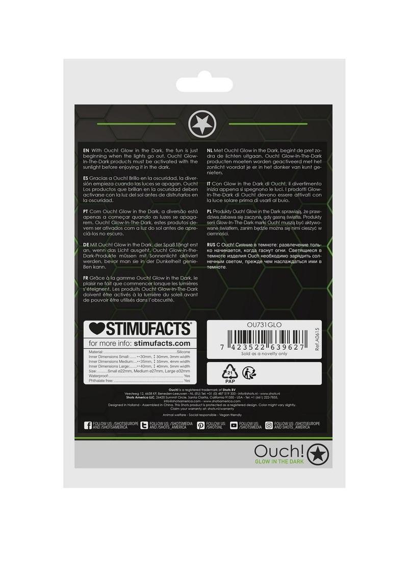 Designed with an authentic bondage aesthetic, but with the added delight of the glow-in-the-dark properties, the fluorescent green detailing will turn every event into a part. With Ouch! Glow in the Dark, the fun is just beginning when the lights go out.