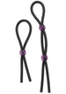 Slip one of these penis ties on and enjoy the ride of your life. Made of high-quality and hygienically-superior silicone, these rings are super stretchy and will adjust to accommodate most sizes. This two ring set features one tie for just the penis and another for the penis and testicles. The clear ball accents are used to adjust the sizes of these completely sturdy and flexible ties offering you long-lasting erections and helping to prolong ejaculation. phthalate-free. Available in Purple and Black.