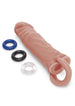 The 1" realistic extender features a veiny, curved shaft for powerful stimulation and helps to add extra length and girth for your penis. The flexible design helps you to achieve maximum pleasure during penetration thanks to the thick, curved shaft, and the ball loop helps secure the extender in place. Use the three included rings to increase your stamina and enhance your pleasure.