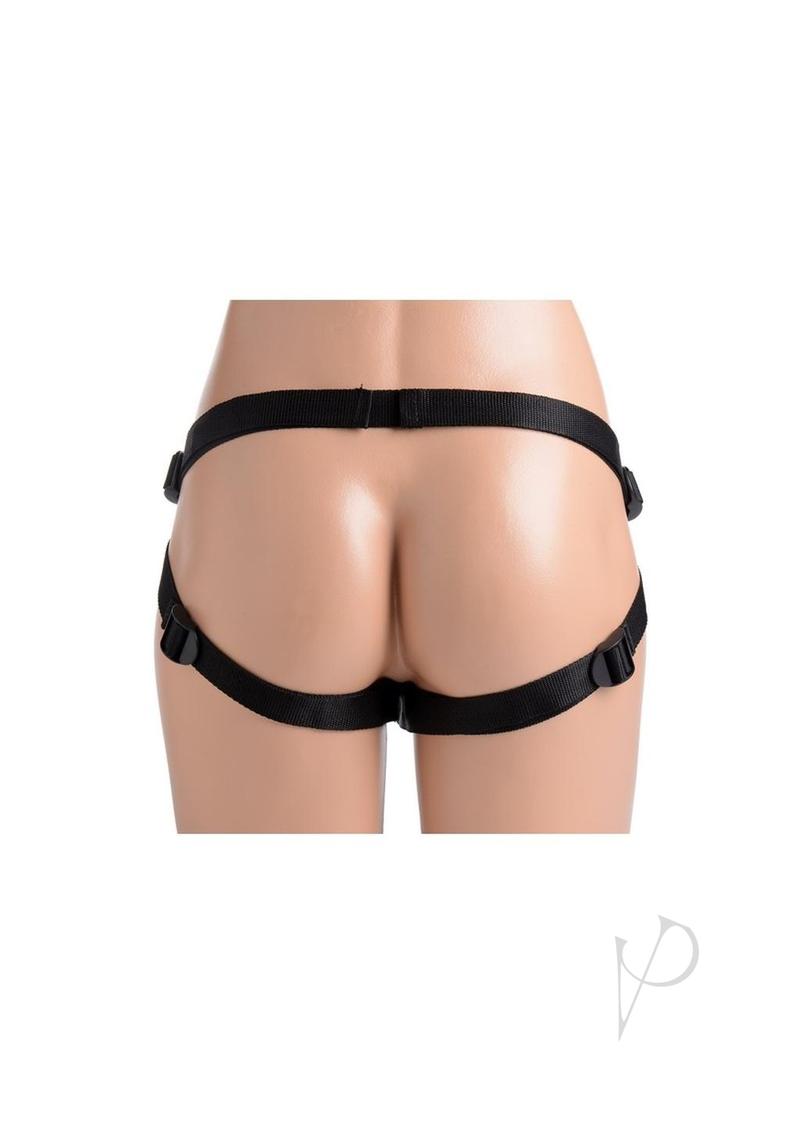 Perfect for pegging or vaginal sex, this strap-on set has everything you need for a comfortable and passionate penetration! Equipped with a sexy, adjustable harness and a silky, non-threatening dildo, you and your partner will be able to delve into new pleasure territory. The harness accommodates many sizes, wrapping seductively around the butt and thighs. A small pocket sits within the inner panel for adding a vibrating bullet if you choose. The dildo is curved for prostate or G-spot stimulation, with a tapered shaft that gradually increases in diameter. This, coupled with the smooth material, will allow for an easy insertion at your own pace. The dong can also be used on its own, with a suction cup base that is perfect for mounting to hard surfaces. Made of silicone, it is non-porous and phthalate-free. Sterilize with mild soap and warm water, but do not use with silicone lubricants.