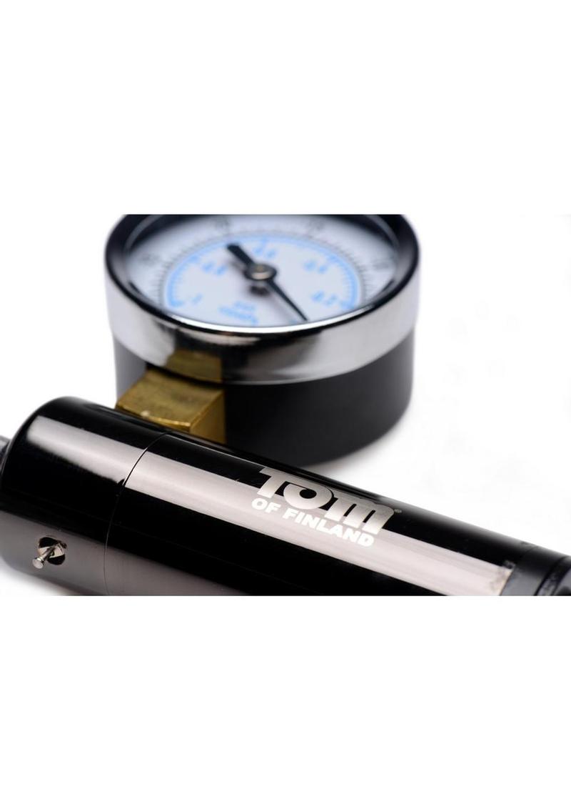 Get rock hard with a heavy-duty pumping system. Achieve an erection as impressive as the iconic drawings of Tom of Finland when you slip your penis into the silicone comfort sleeve of the cylinder, creating a strong seal with a bit of water-based lube if necessary. Snap the hose onto the vacuum lock top of the cylinder and squeeze the comfort grip handles to begin suction. Every squeeze will reflect on the pressure gauge, as well as in your penis as it becomes engorged.